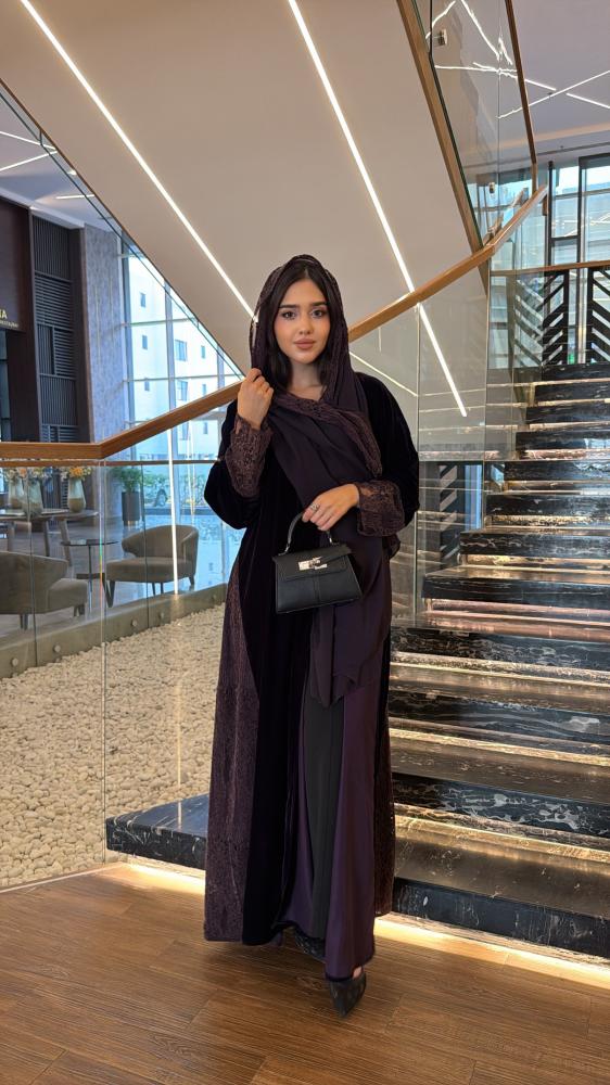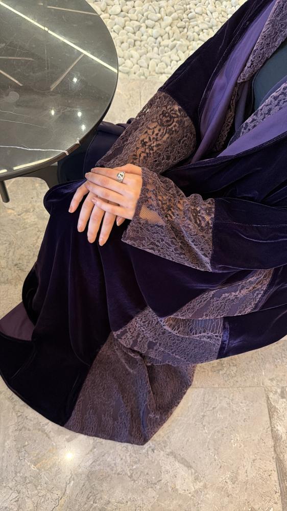 القماش / مخمل بنفسجي + من الجنبين مخمل دانتيل مبطن